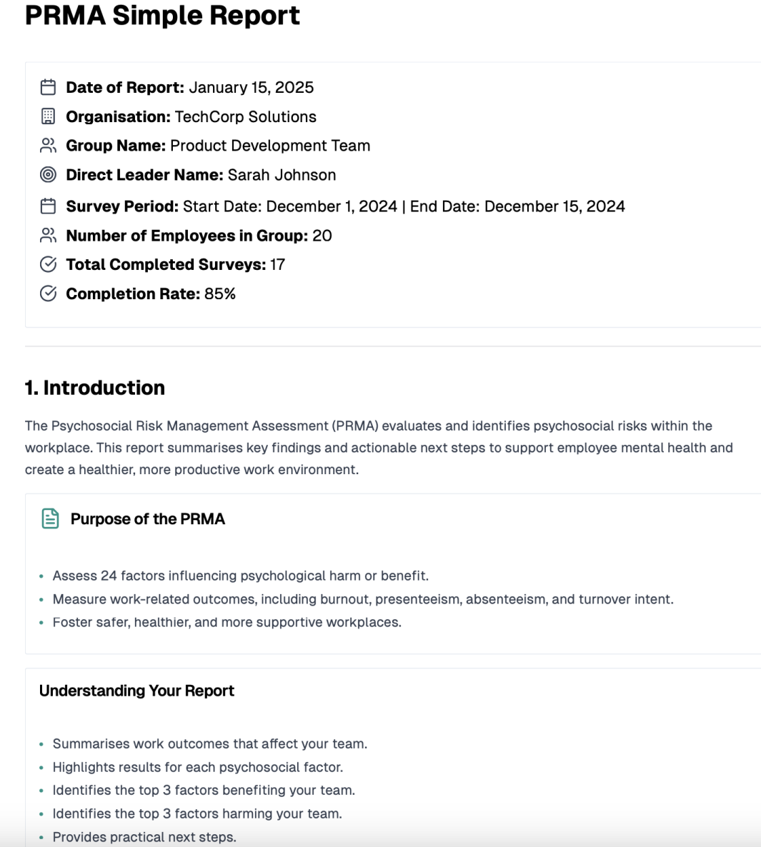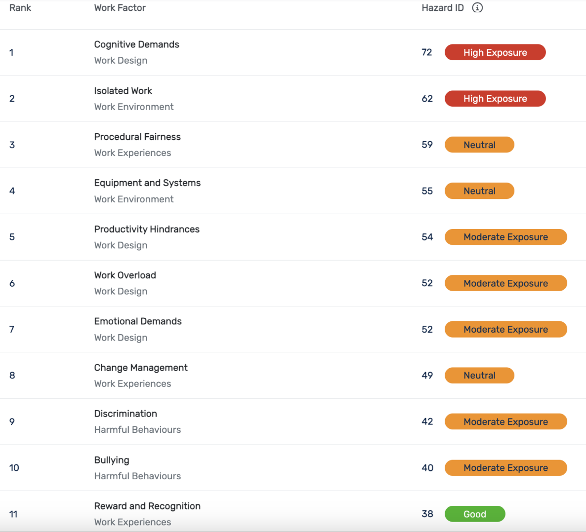 Quickly identify your organisations biggest hazards and supports to understand where the potential for mental health and well-being harm and benefit lies.