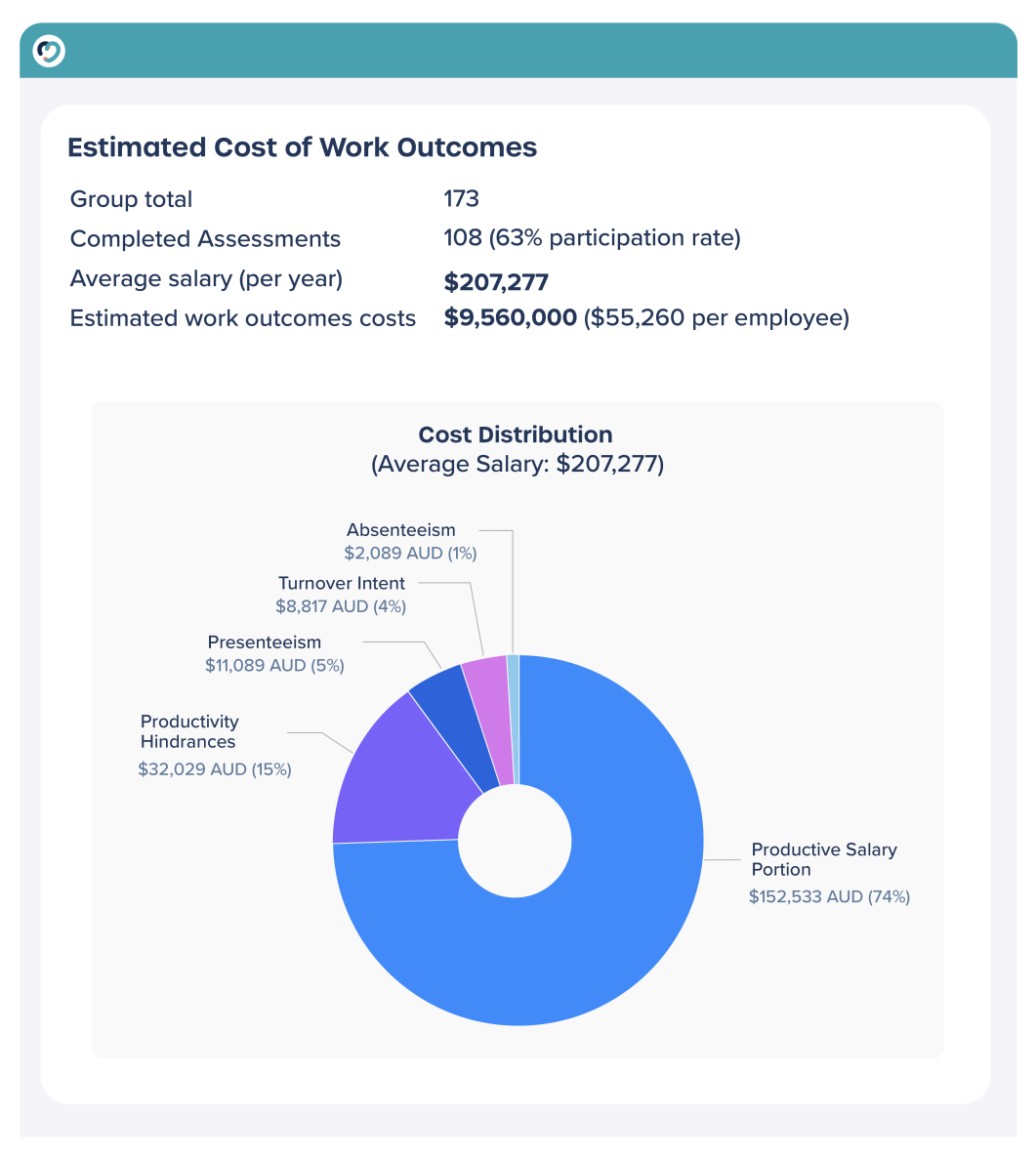 Our psychosocial risk assessment tool also uniquely calculate direct costs linked to the psychosocial environment via the assessment of Burnout and job-stress-related Absenteeism, Presenteeism, and Turnover Intent. This helps communicate job stress related financial costs and control measure ROI to boost leadership buy-in.