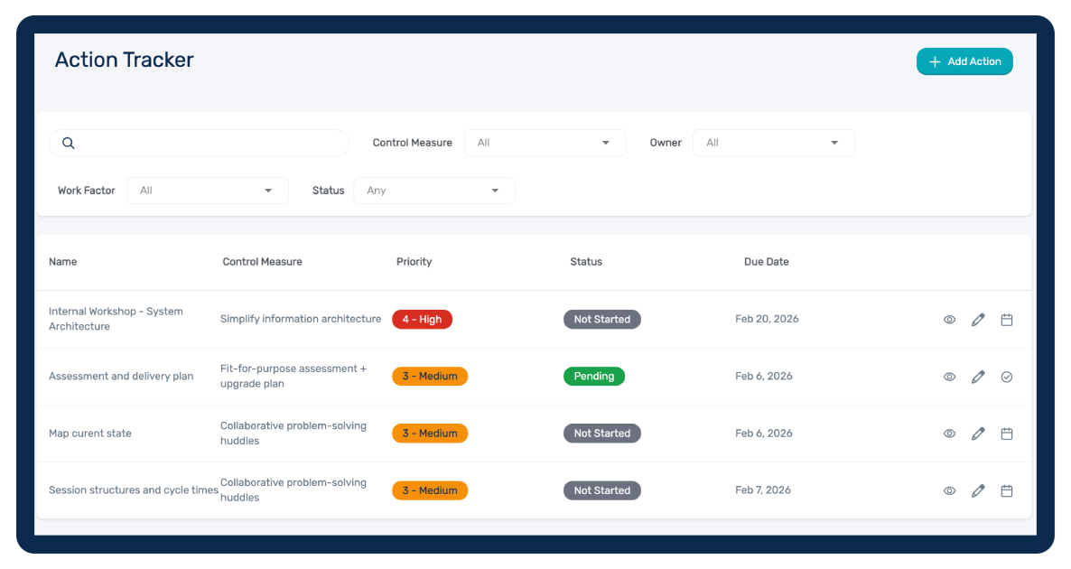 When actions are completed, you have a clear record that delivery happened, and that record matters both for managing the program and demonstrating it when its required. All people responsible for action delivery will receive automated notification updates based on status to keep accountability clear.